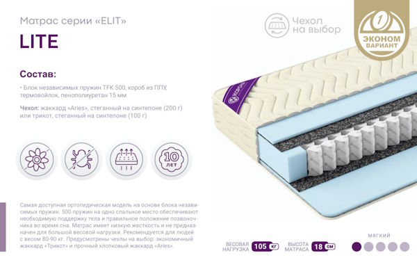 | Нагрузка (Вес) на 1 спальное место | 105 кг |