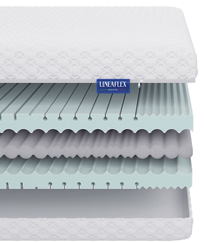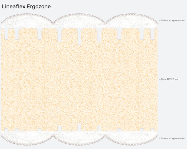 Инновационная модель от российского бренда «Линия Флекс» – новый анатомический матрас Ergozone, обладающей высочайшей несущей способностью. В основе изделия состоит семизональный монолитный блок со сложным рельефом, обеспечивающий непревзойденную трансформацию под контуры тела человека. Еще одним преимуществом является отменная циркуляция воздуха, способная регулировать температуру на высоком уровне, и за счет правильного воздухообмена, предотвращает появление вредных микроорганизмов.