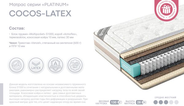 | Наполнитель матраса | термовойлок/кокосовая койра/ппу/латекс |