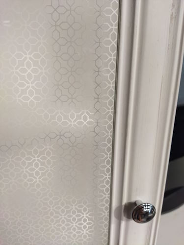 Фасад пенала Клер украшен стеклянной вставкой.