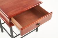 Fiona – стильная прикроватная тумбочка польской компании Halmar с полкой и выдвижным ящиком. Корпус изготовлен из массива натурального дерева. Каркас и полка выполнены из окрашенной в черный цвет стали.